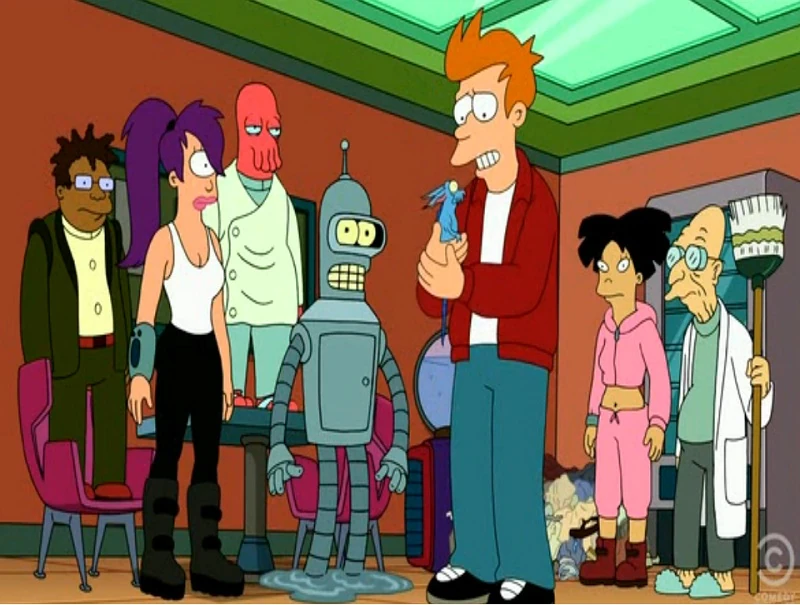 Personajes y Reparto []. Futurama perteece al género comedia de situación, por ello la trama gira en torno a las actividades y aventuras de los empleados de la empresa Planet Express.La mayoría de los episodios traman sobre el trío: Fry, Leela y Bender, aunque también de otros personajes. Philip J. Fry: Fry es un muchacho que trabajaba como repartidor de pizza, fue congelado justo.