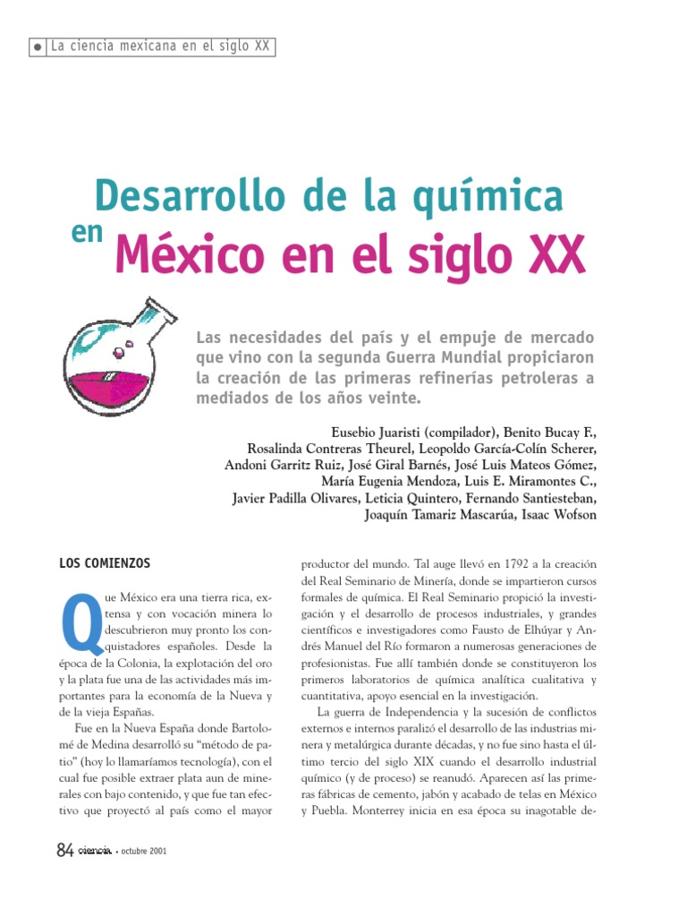 Arturo Enrique Méndez Gutiérrez. José Antonio Zamora Plata. Rafael Sánchez-Dirzo. Request PDF | On Jan 1, 2001, Eusebio Juaristi published El desarrollo de la química en México en el Siglo.