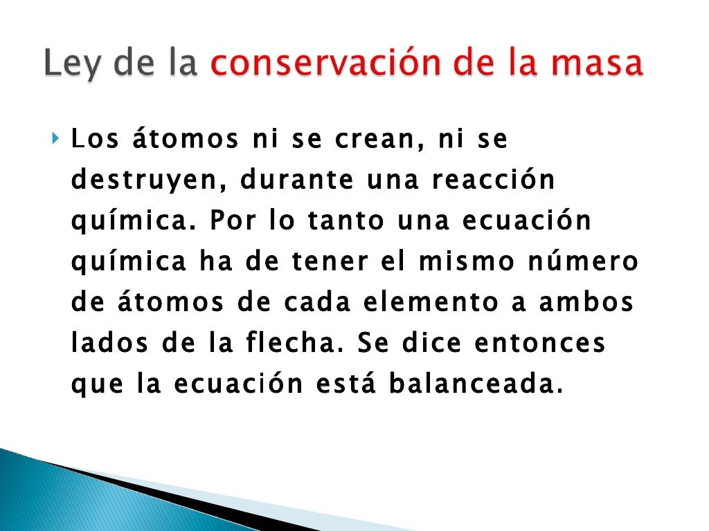 Ley de la conservación de la masa Química, Reacciones quimicas, Ecuaciones