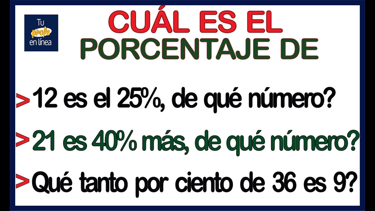 CUÁL ES EL PORCENTAJE DE UN NÚMERO RESPECTO DE OTRO🔘 YouTube