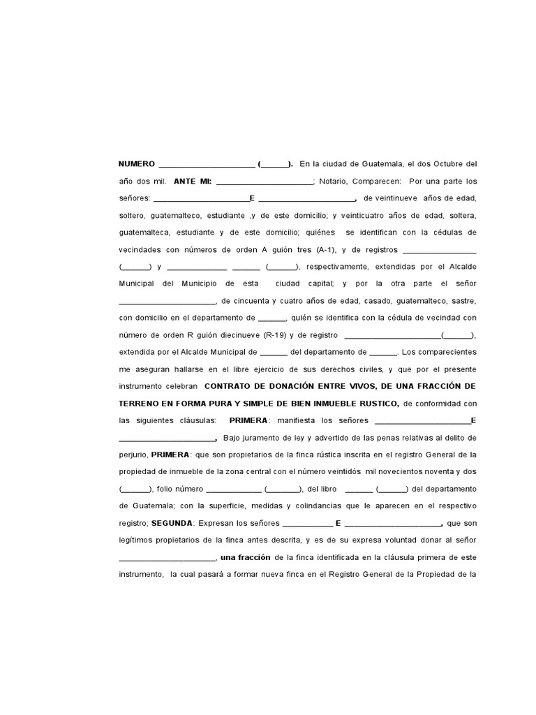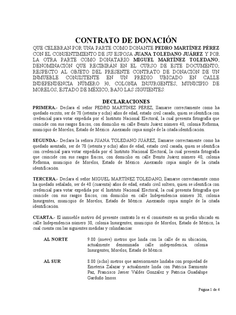 Modelo De Contrato De Donacion Entre Vivos MIDE
