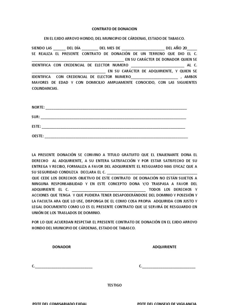 Contrato De Donacion Ejemplos Y Formatos Word Y Pdf Para Imprimir Images
