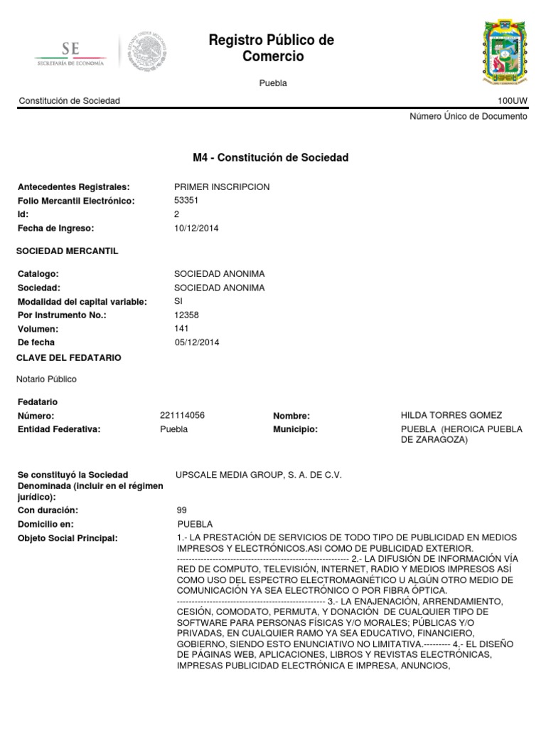 Registro Público de Comercio M4 Constitución de Sociedad Publicidad Negocios