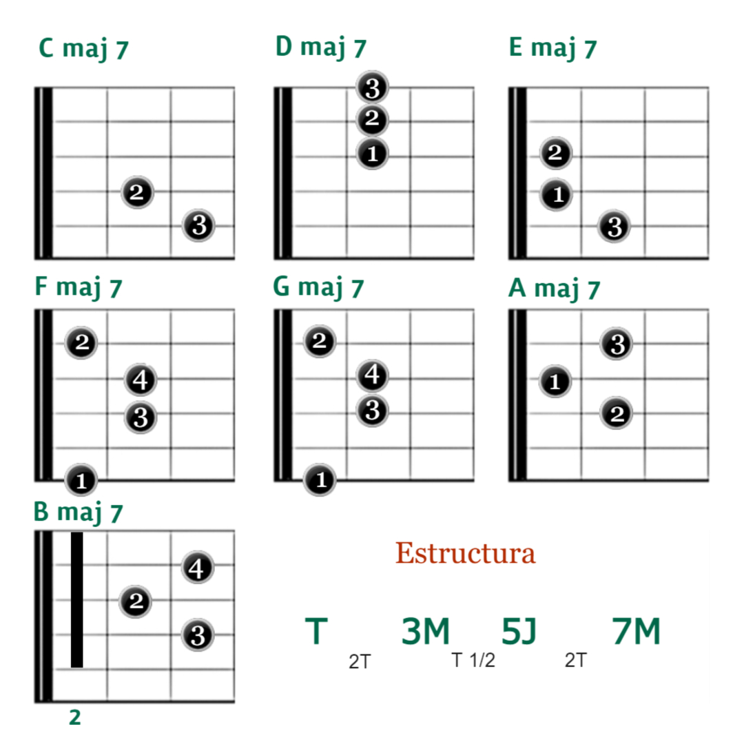 Clases de Guitarra (Pablo Bartolomeo) Gráficos de acordes Maj 7
