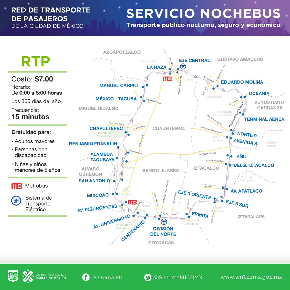 Metro Cuatro Caminos Lado Del Paradero Anden N: Ruta 105: Tecamac Edo. De México: Metro Martín Carrera: Ruta 106: Metro Normal: Ex Hacienda (Plan De San Luis - Ceylan) Ruta 106: Metro Chapultepec: Metro Barranca Del Muerto: Ruta 107: Metro Balbuena: Andador 44 1A, Auris 1, Méx. Ruta 107: Parque Ceylan: