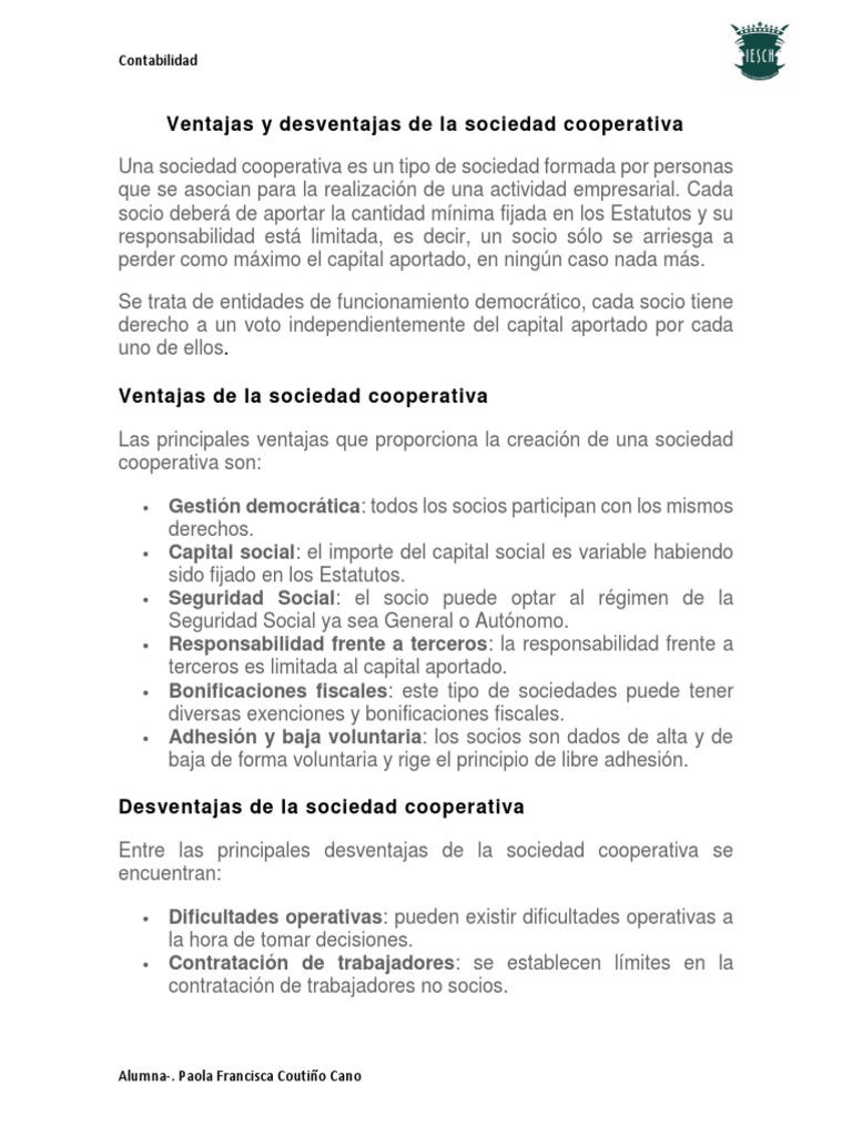 Ventajas y Desventajas de La Sociedad Cooperativa PDF