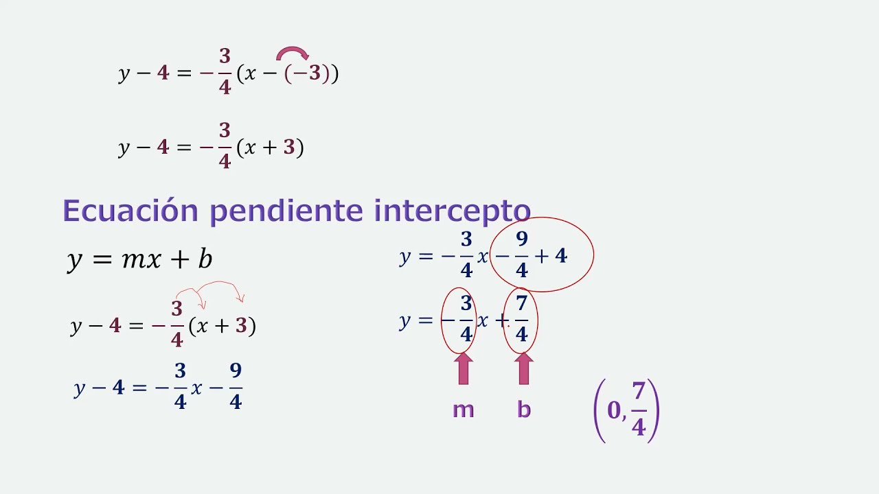 Se utiliza cuando se conoce un punto de la recta y su pendiente. La forma general de esta ecuación es: y - y1 = m (x - x1) Donde (x 1, y 1) es el punto conocido y m es la pendiente de la recta. 2. Ecuación pendiente-intersección. La ecuación pendiente-intersección es otra forma común de expresar una recta.